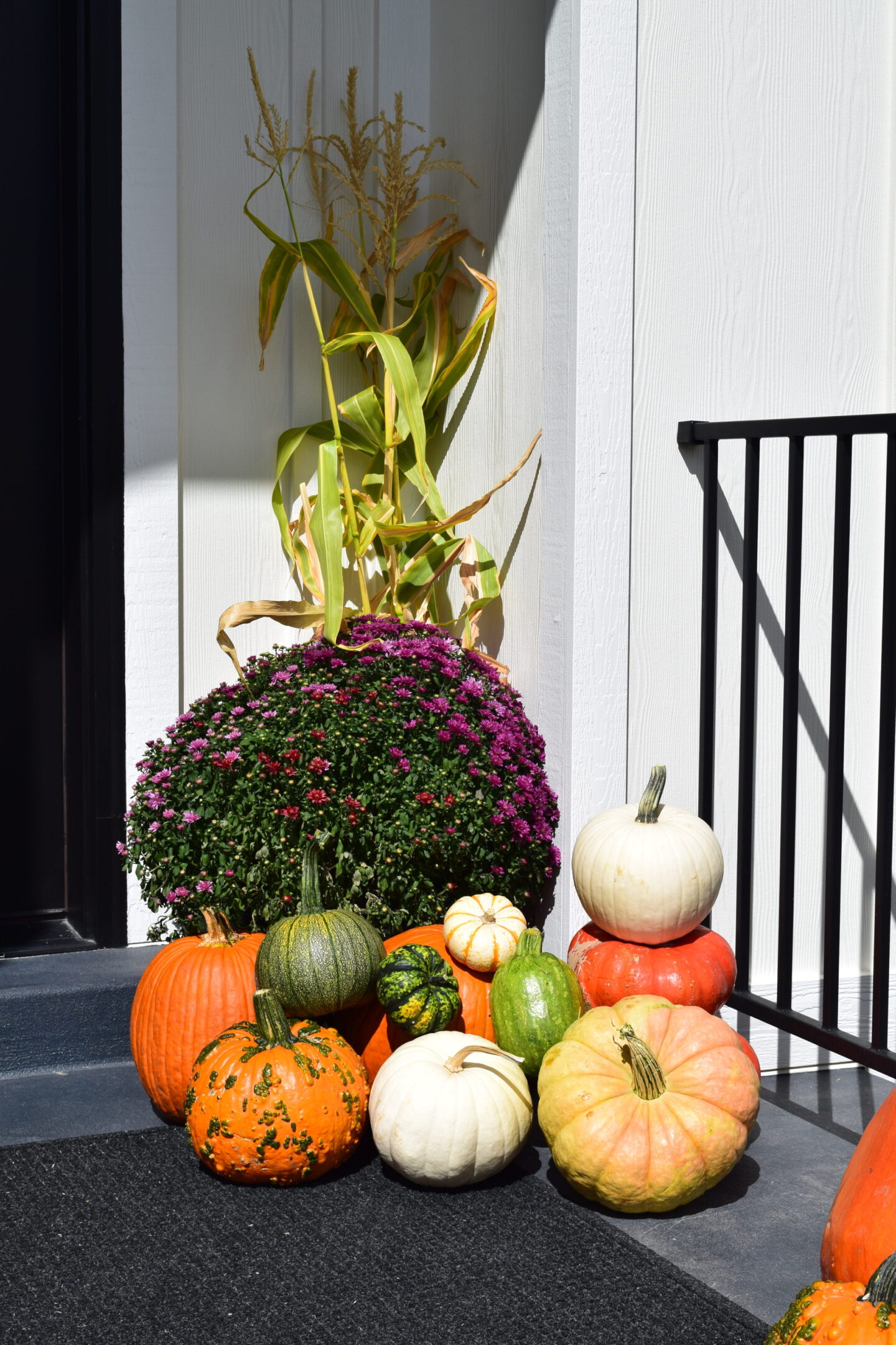 *Please note that pumpkin varieties change from year to year based upon availability but we guarantee that your porch will look great!
